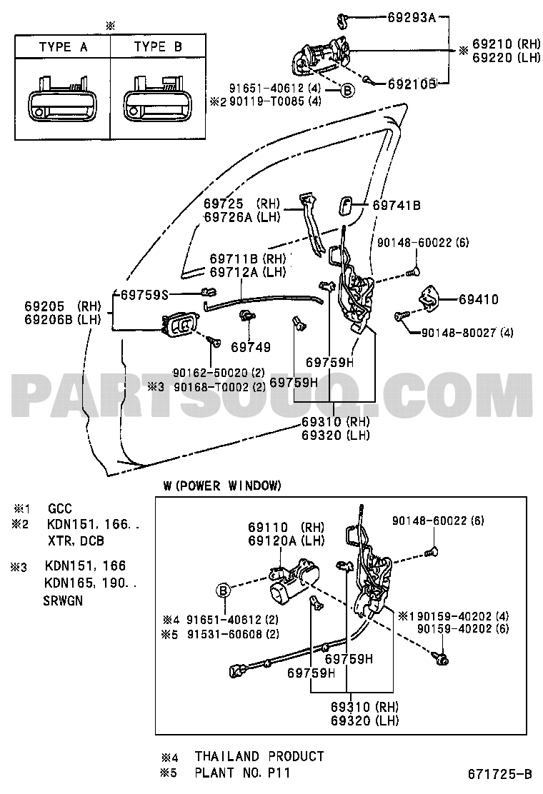 ມືເປິດປະຕູຫນ້າ TOYOTA Tiger ແທ້ສູນ