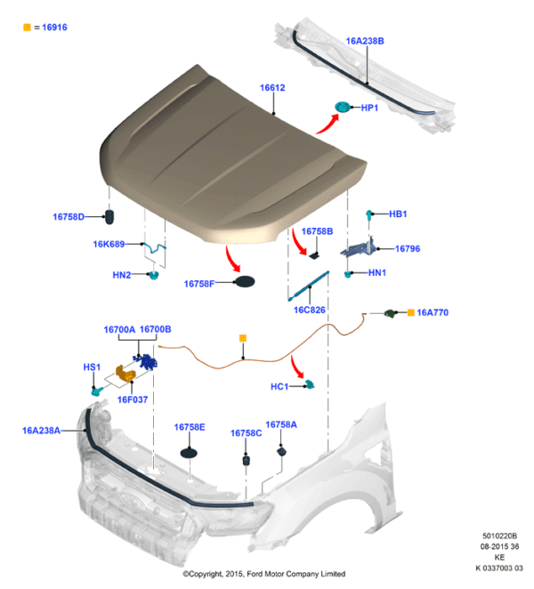 ຝາກະໂປງໜ້າ Ford Ranger T6 2015-2019 ຂອງແທ້